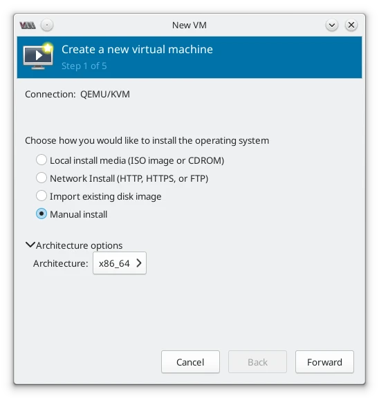 Install QEMU, Libvirt, Virt Manager on your Linux host.