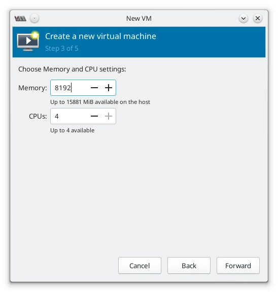 Allocate 8GB RAM (minimum 4GB) and 4 cores.