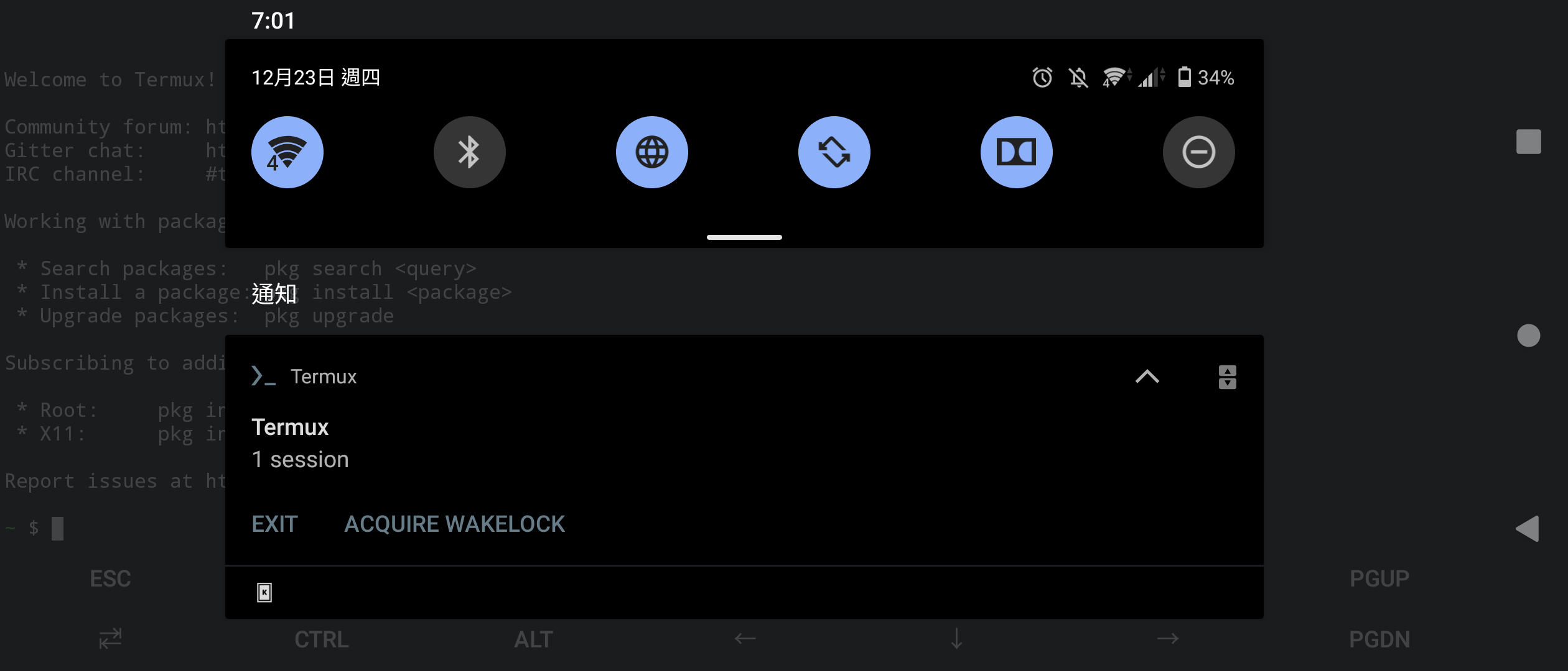 Go back to Termux. Swipe from left edge. Pressing