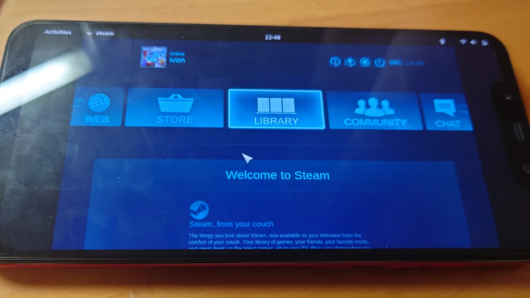 Pinephone users could launch Steam in “Big Picture” mode. But usb dongle does not working on my Xiaomi Poco F1.