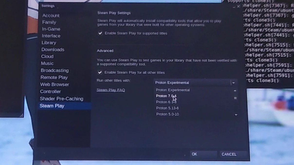 Log into your Steam account. Then enable Steam Play in Settings so it will automatically install Proton after downloading Windows games.