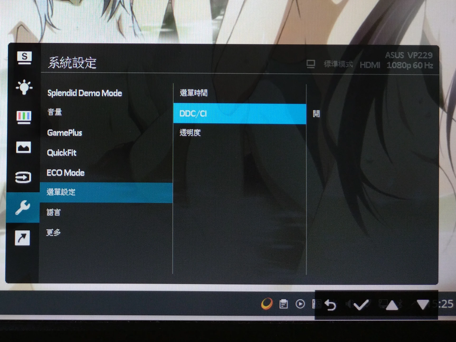 在螢幕OSD選單裡面可以找到DDC/CI的開關。