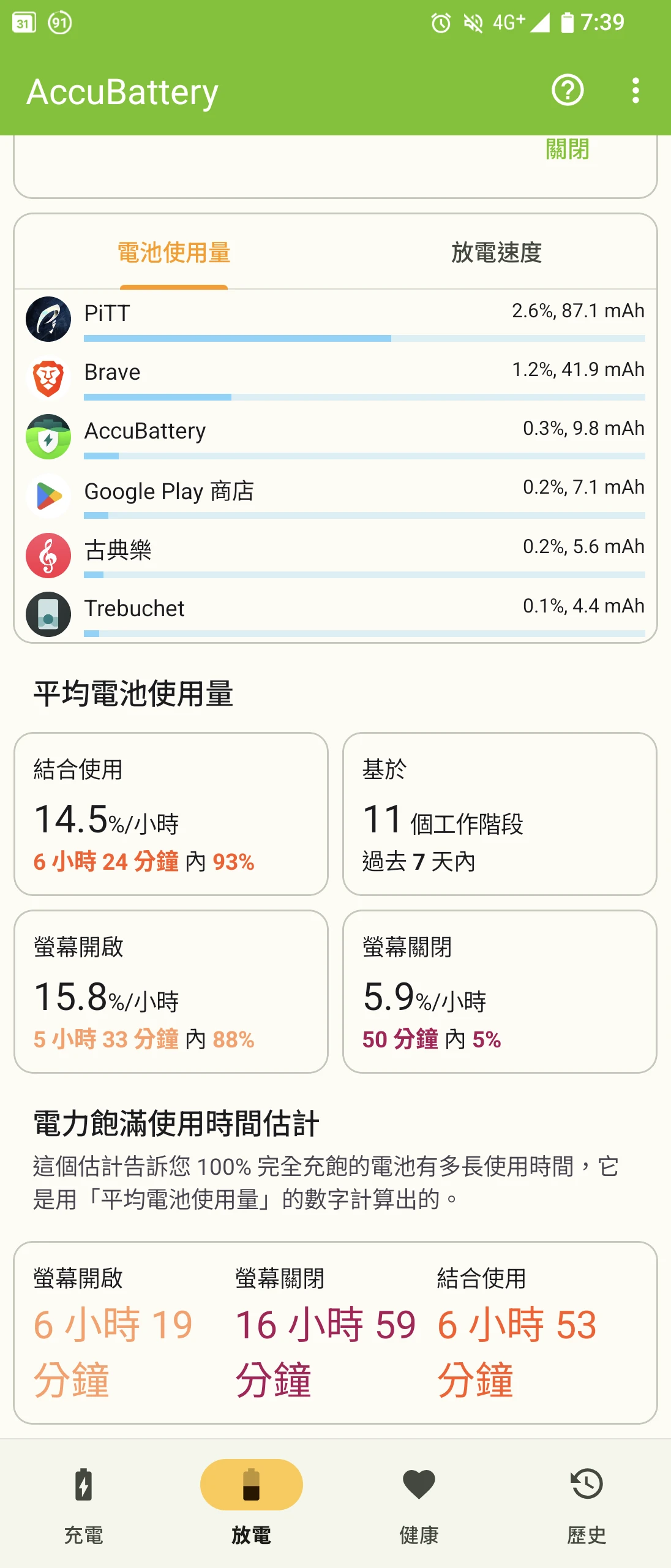 在不關閉任何核心的情況下,Scene達成的續航力效果,從AccuBattery的資料來看,幾乎跟Cortex A55 x4的成果相當