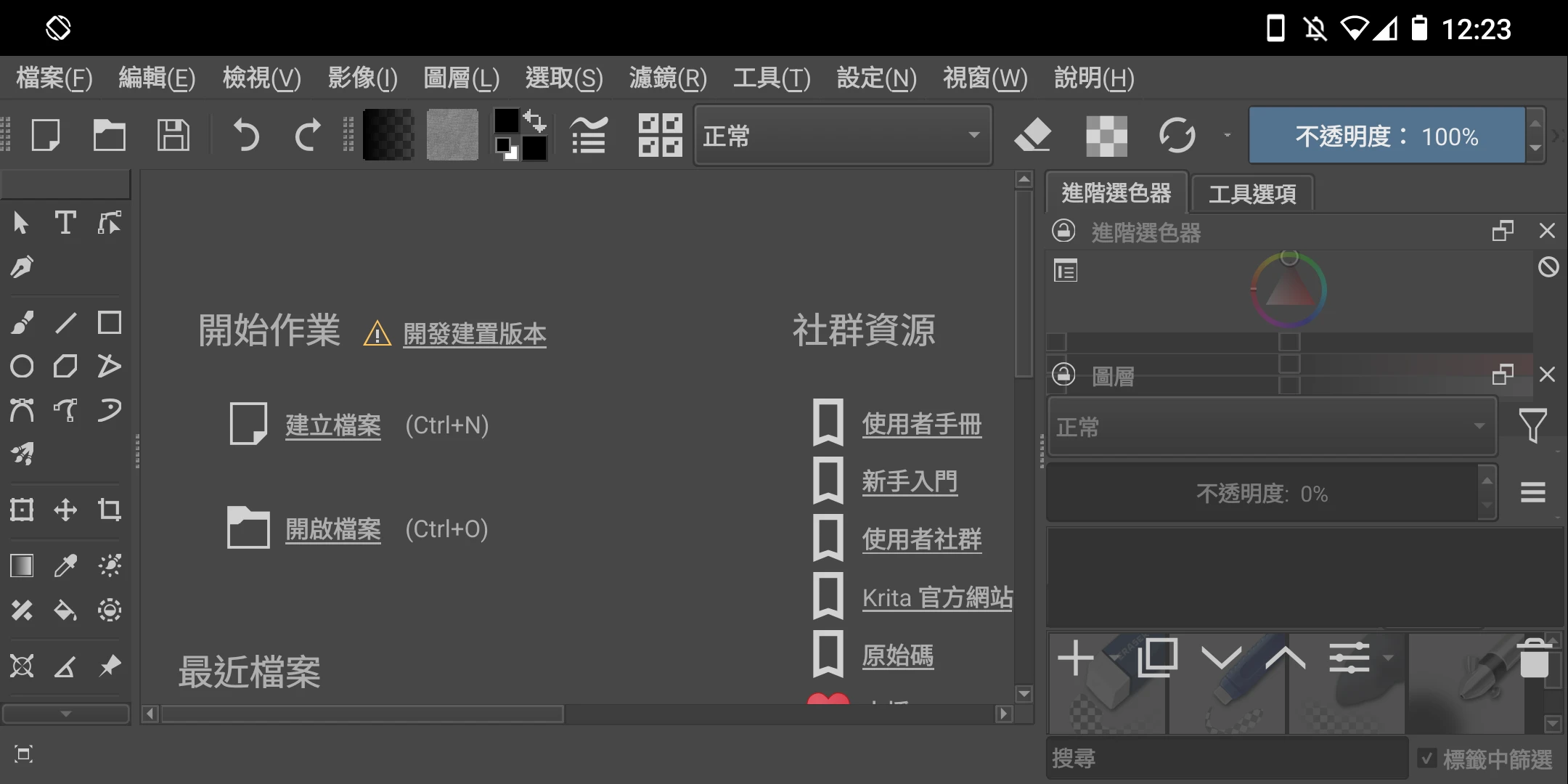 Krita,專業繪圖軟體,跟電腦版一模一樣的介面,所以是原生效能,但這個只適用平板電腦。有些Android裝置可接繪圖板。