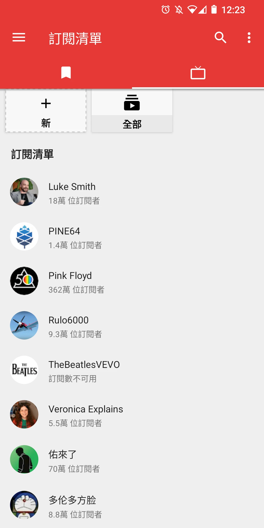 NewPipe沒有登入Google帳號,但仍然可以「訂閱」特定頻道,並收到新影片通知。