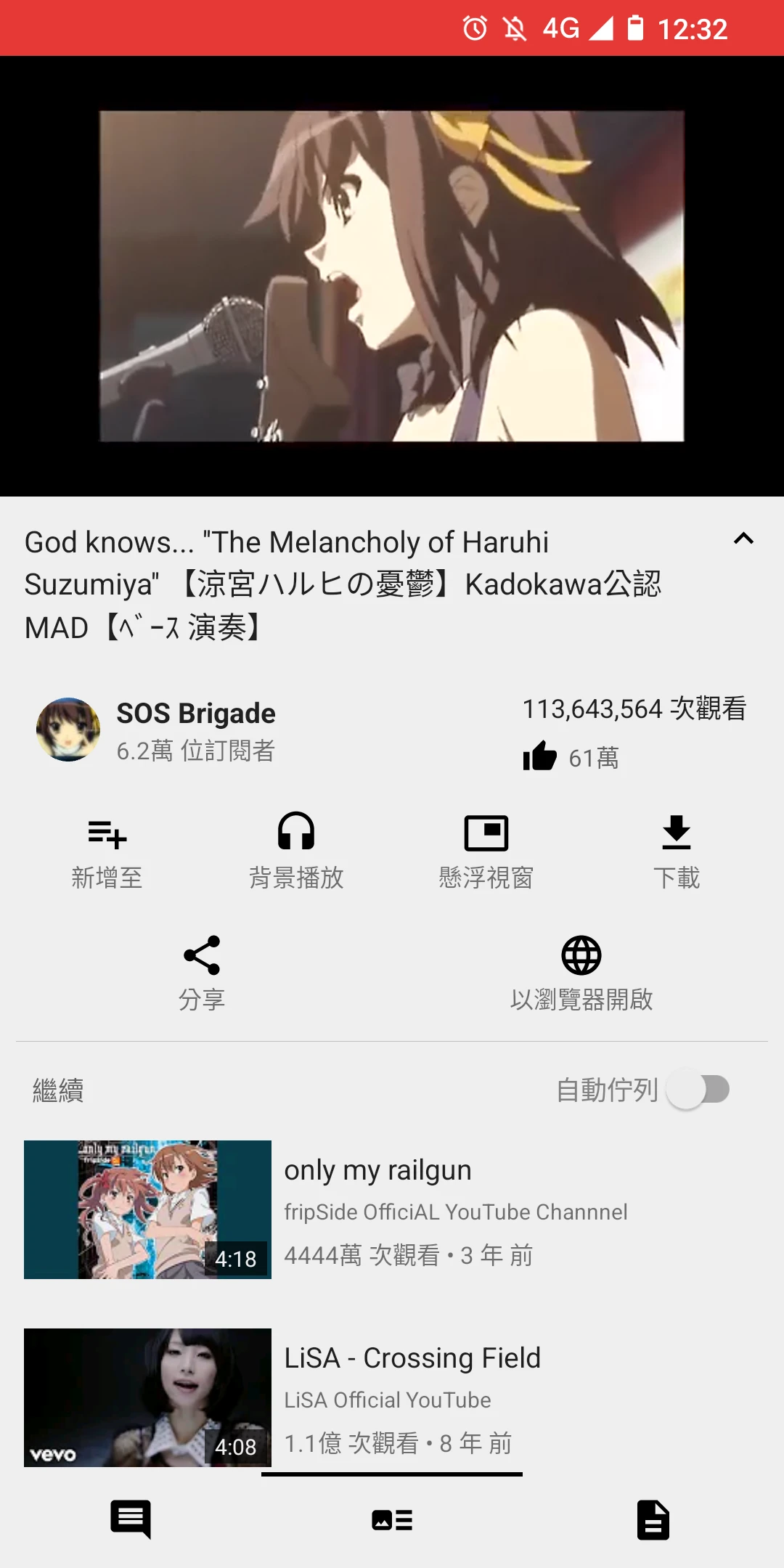 NewPipe的播放界面跟Youtube APP類似,沒有廣告,可正常載入留言,與自動播放下一部影片。