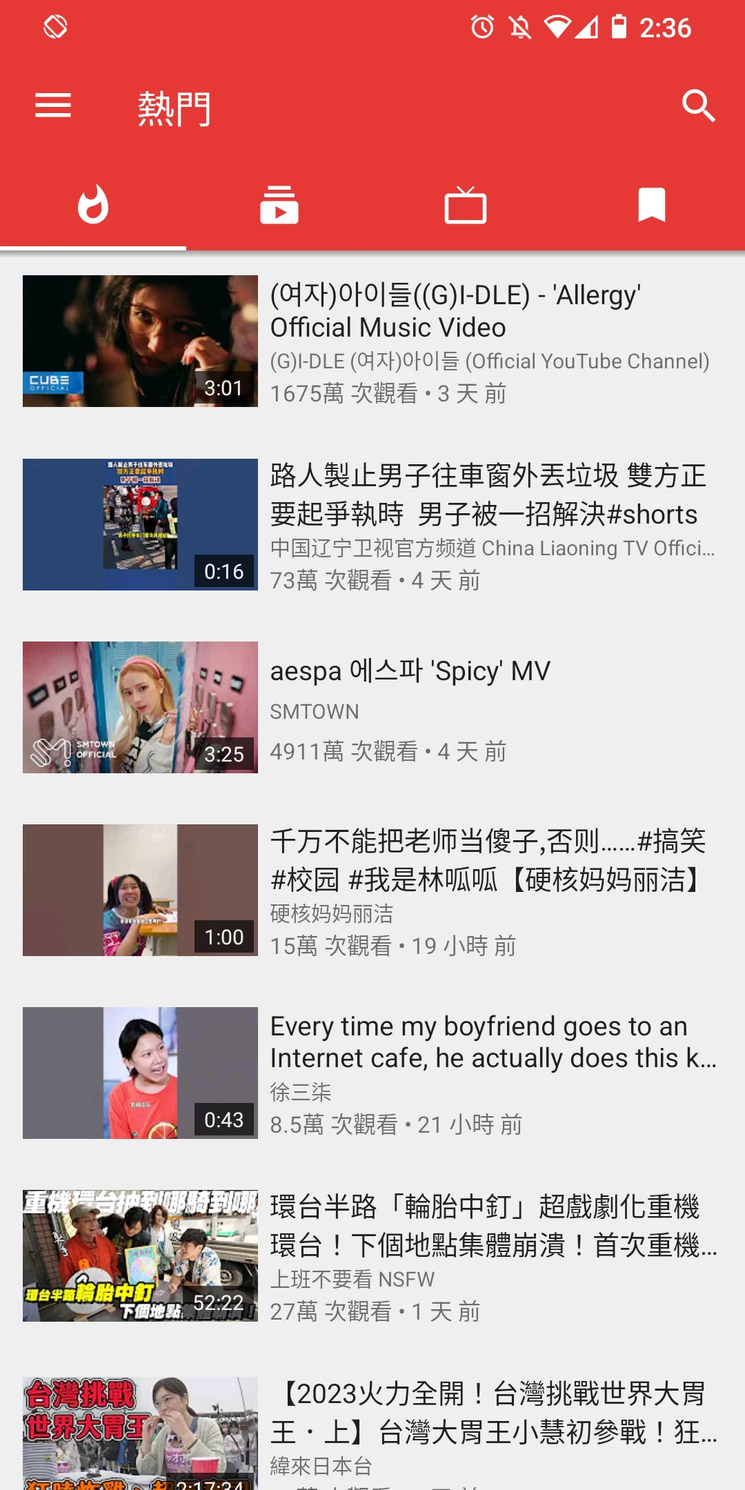 NewPipe預設首頁是顯示您所在地區的熱門影片。