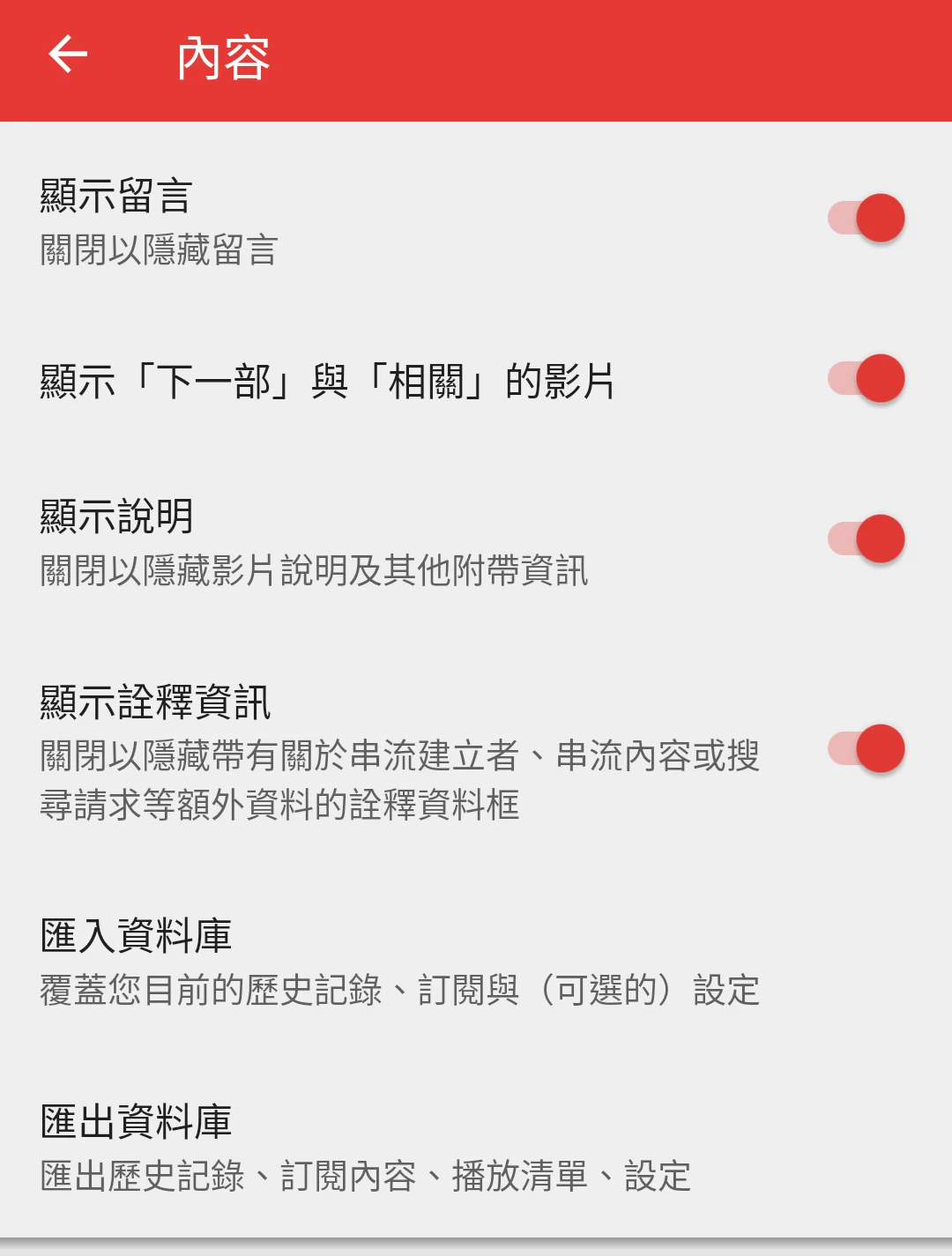 點選設定 → 內容 → 匯出資料庫,這樣即可完整備份NewPipe的歷史紀錄、訂閱列表、播放清單。
