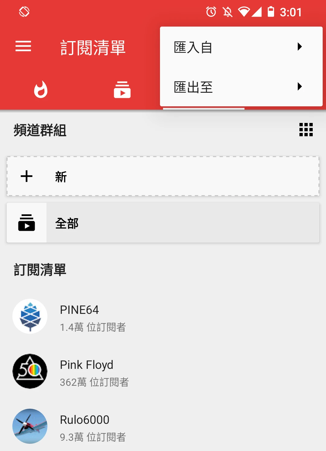 您也可以在首頁的訂閱列表,點選右上角單獨匯出訂閱的頻道清單。
