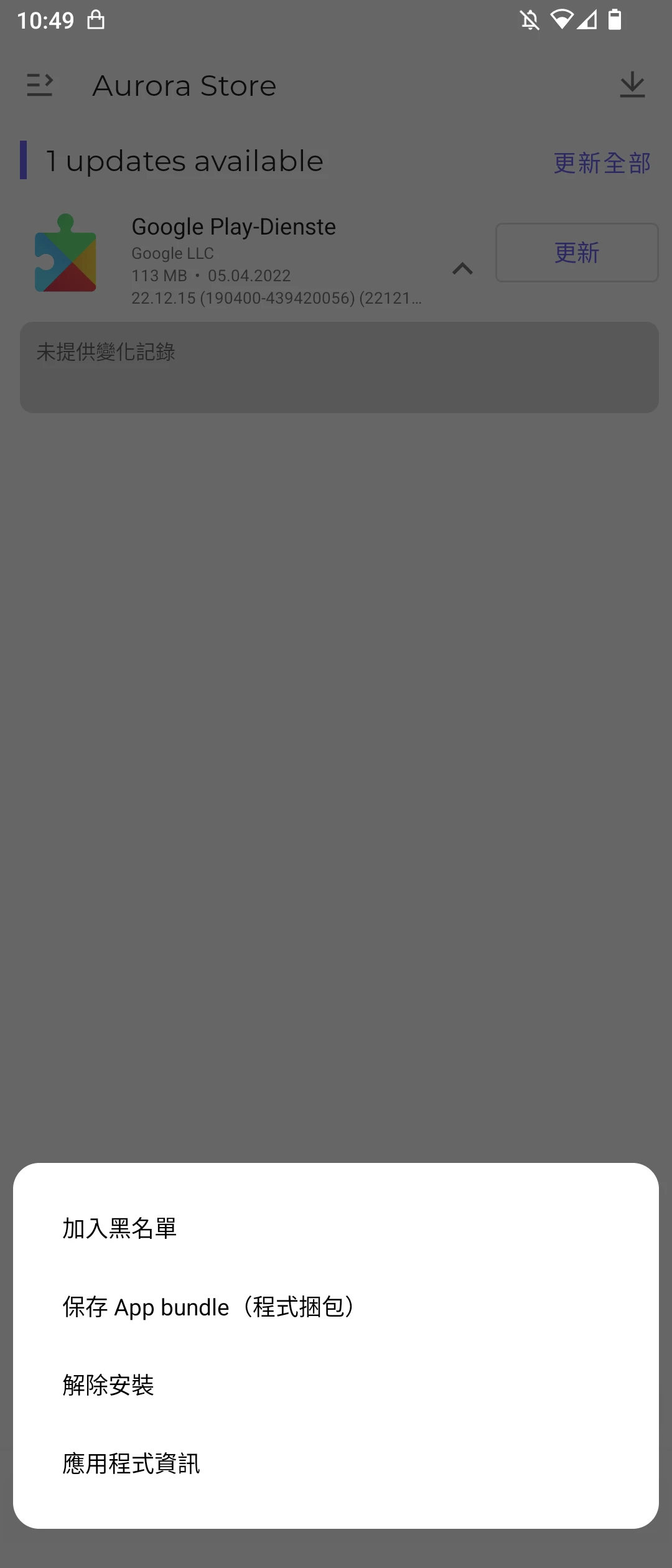 Aurora Store會把microG當作真的Google Play服務,因此必須將其加入黑名單避免自動更新。