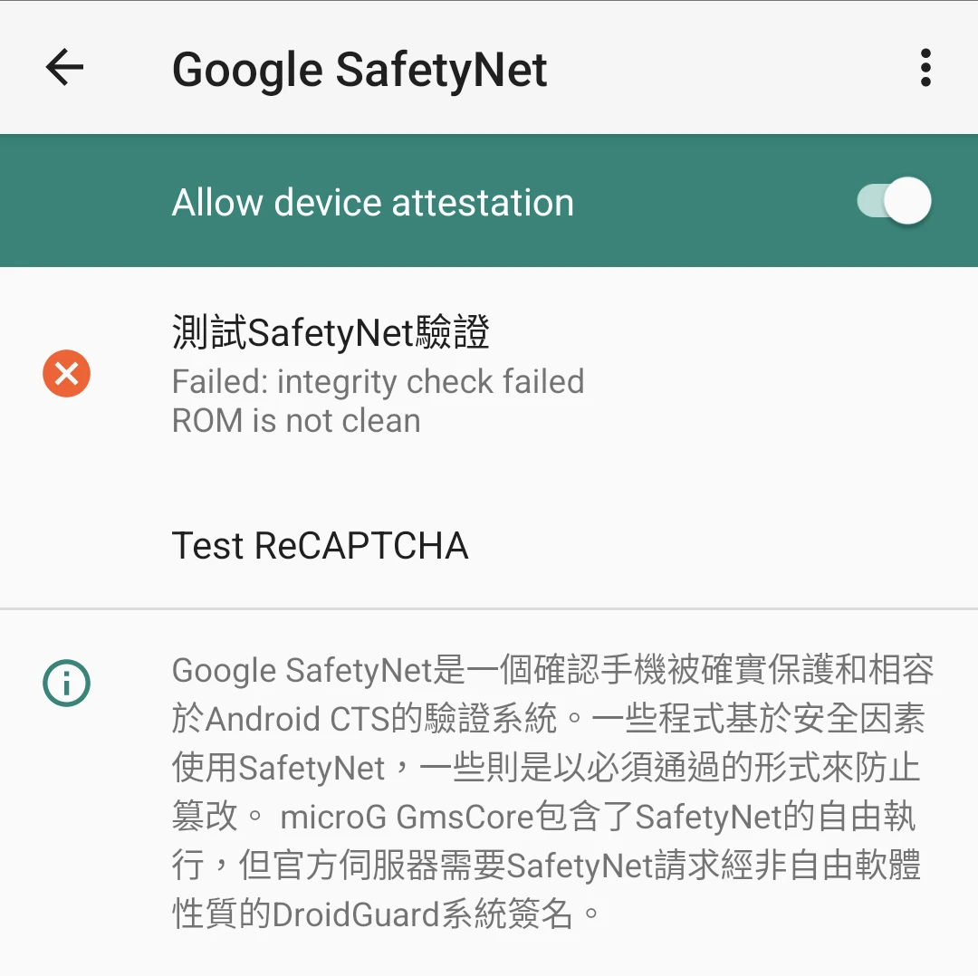 microG也可以開啟SafetyNet,不過有Root不容易通過。