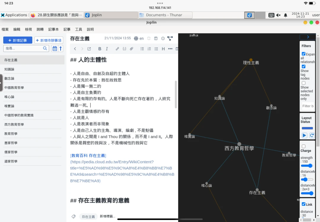 比如筆記軟體Joplin,iPad的Joplin只是iPhone放大版,功能過於簡陋,尚未移植許多電腦版的功能,例如筆記關係圖。在處理筆記的時候總是綁手綁腳,很多東西得開電腦處理。所以我就在想要怎麼跑電腦版Joplin。
