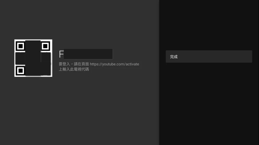 點選登入後,電視會顯示一組代碼,依照指示用您的手機/電腦掃描登錄Google帳號。