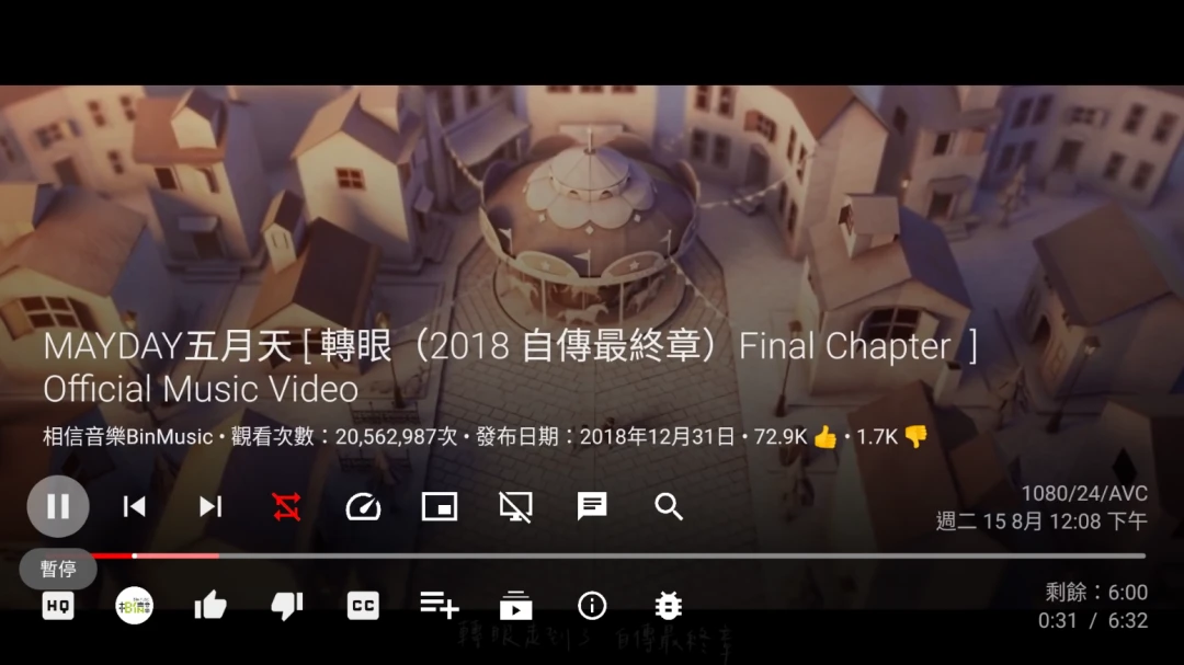 說到播放影片部份,SmartTube可不只去廣告,它還有眾多額外功能。例如下圖影片播放器多出了更多選項,紅色的按鈕是重複播放的開關,速度計是影片速度。