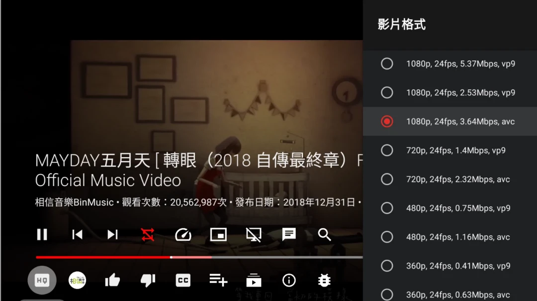 其中影片播放的選項比原版Youtube更為細緻,您可以按照電視盒的性能選擇編碼器,例如VP9和AVC編碼大多數裝置都能處理,最新的AV1編碼(我的電視盒太舊不支援)壓縮品質更好但更吃CPU性能。