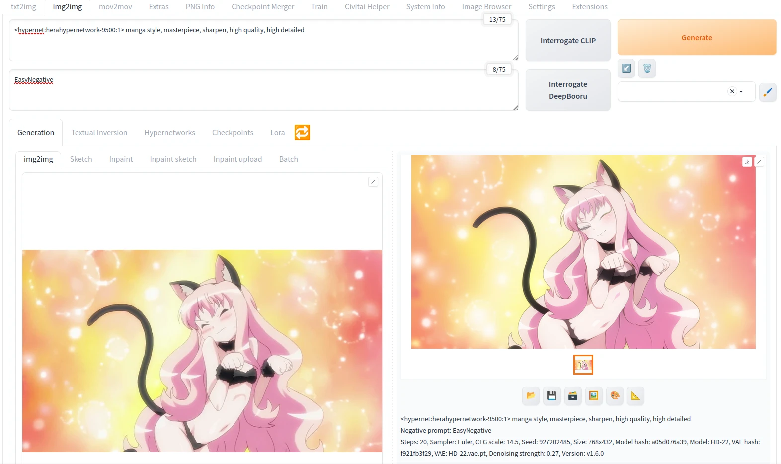 由於Stable Diffusion是生成式AI,除了放大外,還可以利用圖生圖 + GFPGAN臉部修復功能,讓AI重新繪製放大後的圖片,補充更多細節,甚至去掉馬賽克也不是問題了。