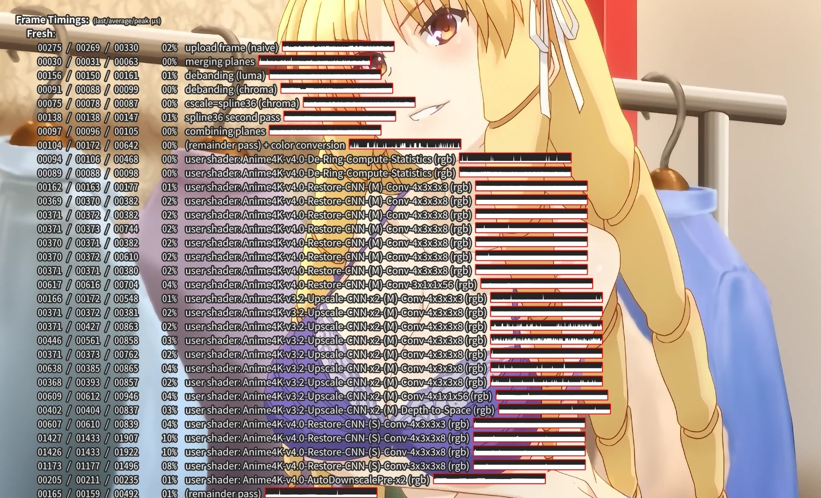 CTRL+5 no-osd change-list glsl-shaders set "~~/shaders/Anime4K_Clamp_Highlights.glsl:~~/shaders/Anime4K_Restore_CNN_Soft_M.glsl:~~/shaders/Anime4K_Upscale_CNN_x2_M.glsl:~~/shaders/Anime4K_AutoDownscalePre_x2.glsl:~~/shaders/Anime4K_AutoDownscalePre_x4.glsl:~~/shaders/Anime4K_Restore_CNN_Soft_S.glsl:~~/shaders/Anime4K_Upscale_CNN_x2_S.glsl"; show-text "Anime4K: Mode B+B (Fast)"