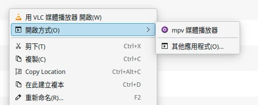 接著用MPV播放影片試試吧,檔案管理器裡對影片右鍵應可選取用MPV播放。
