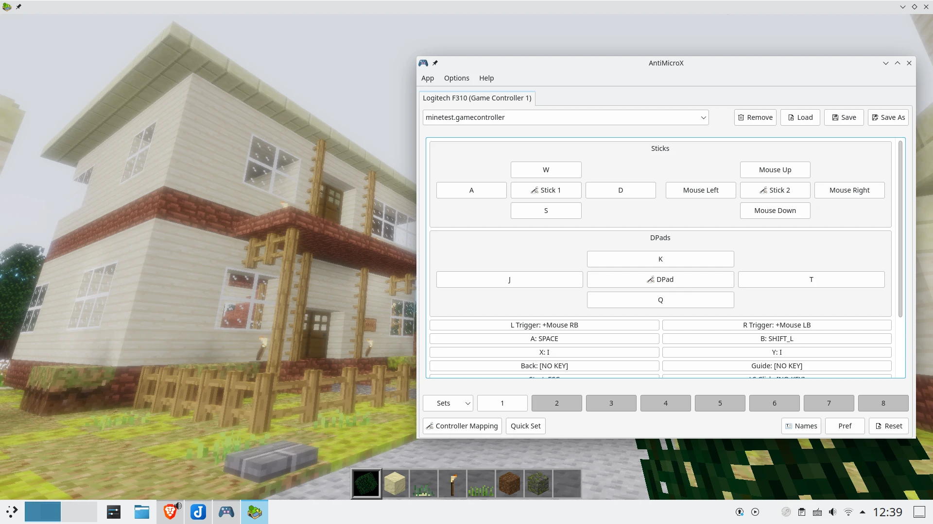 以Minetest為例,我是參考Minecraft的手把設定,將按鍵做如此映射