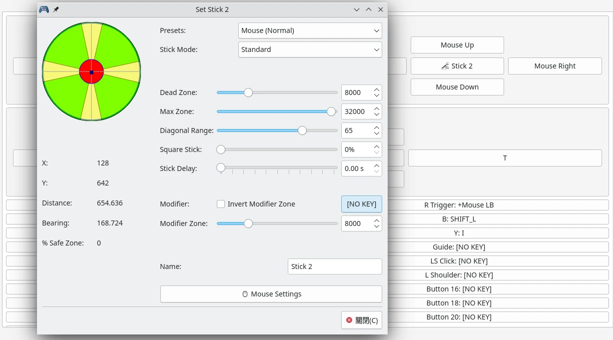 要手動映射按鍵的話,點選要使用的鍵,設定要映射的鍵。AntiMicroX自由度很高,鍵盤或者滑鼠鍵都能映射