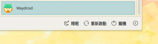 點選應用程式列表的「Waydroid」圖示開啟主畫面,或者使用指令: