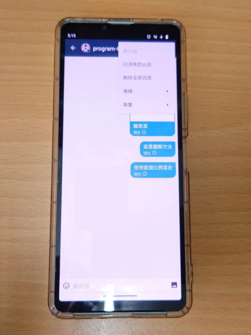 要實測藍牙連線的效果的話,把你手機的飛航模式開起來,斷掉所有網路,再手動開啟藍牙。然後在聊天界面右上角點連線 → 使用藍牙連線。雙方可能都要點這個按鈕才能用藍牙通訊。