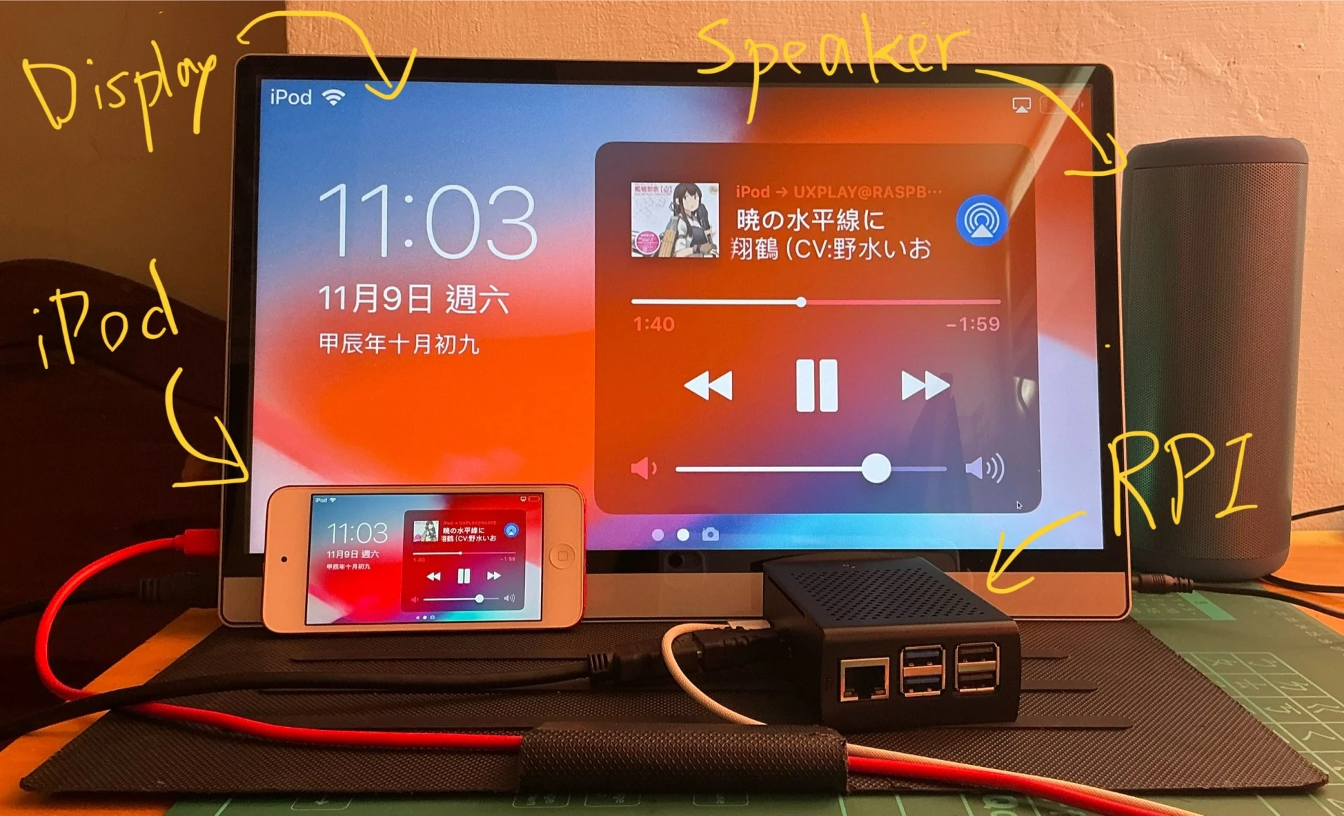 iPhone相對單純,只要在樹莓派裝開源的AirPlay接收器Uxplay,就能透過AirPlay播放iOS裝置上的影片和音樂,還有投放螢幕。