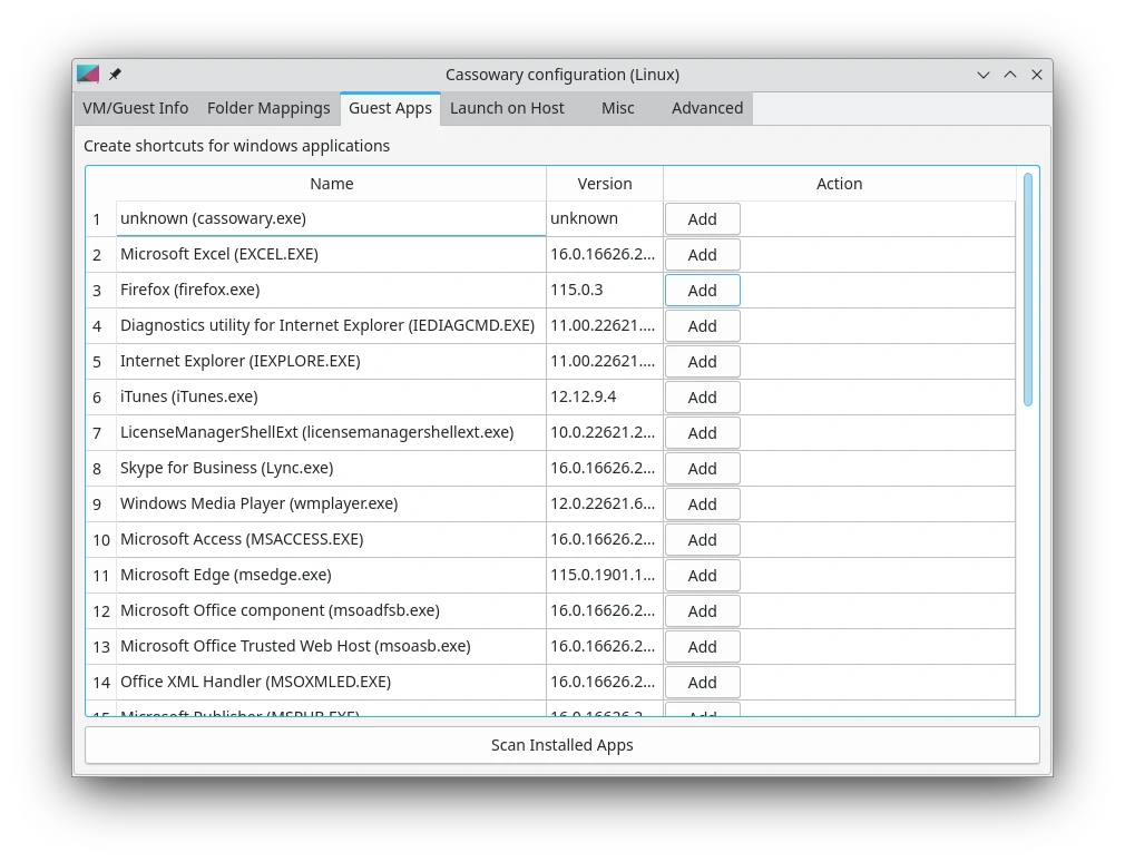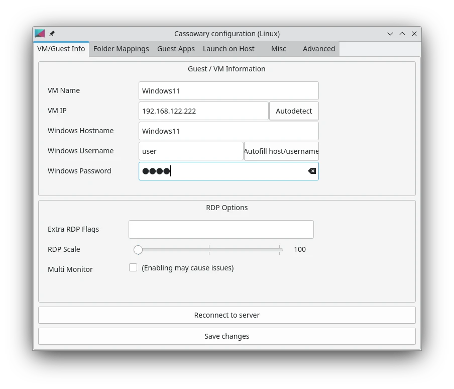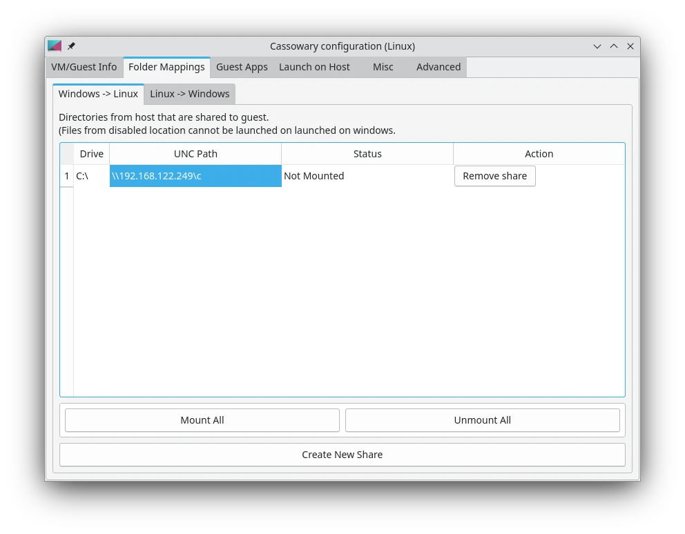 那這跟手動設定虛擬機RDP再用Remmina存取有何差別?用Cassowary可以簡化存取虛擬機應用程式的過程,Cassowary提供圖形界面開關虛擬機,能夠掃描虛擬機安裝的軟體,將其捷徑新增到Linux桌面,還能與Windows共享資料夾。並且,Cassowary能在不需要虛擬機的時候將其暫停釋放資源。