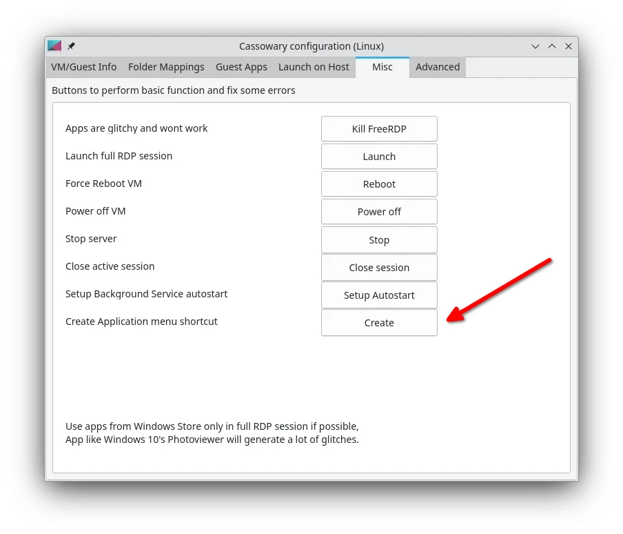 點選Misc → Create Application menu shortcut,將Cassowary新增至Linux應用程式列表