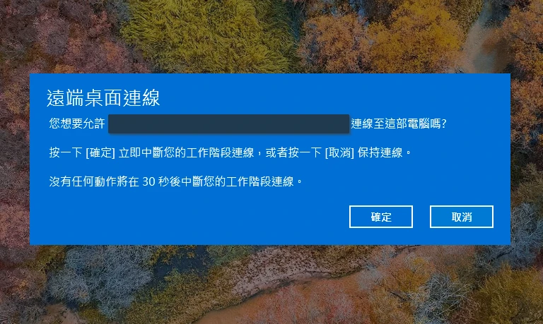 點選Reconnect to server,RDP視窗應該會跳出來。此時要切換到Virt Manager的視窗,同意遠端桌面連線。