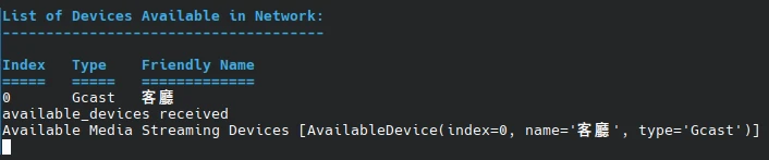mkchromecast在投放的時候會自動選取第一個找到的裝置,若有多個裝置請加上IP引數(--host 192.168.1.101)或名稱(--name 名稱)。