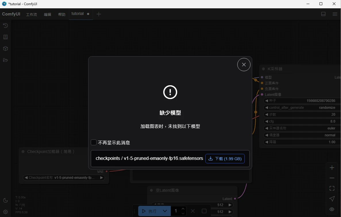 跳出來主界面之後,依照指示下載預設的Stable Diffusion模型,將.safetensors檔案放到