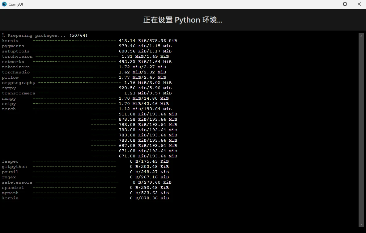 跟原本的ComfyUI比起來,更像是一個桌面應用程式。ComfyUI Desktop執行的時候就像一般圖形軟體,不會跳出終端機畫面,這樣對一般用戶較為友好,只要下載安裝檔,開啟後便會自動裝好ComfyUI的Python依賴套件,不需要打指令。