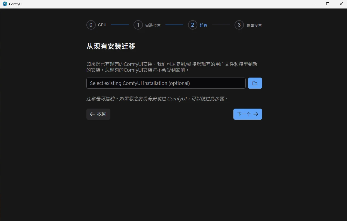 ComfyUI Desktop會將設定檔放在固定位置,也可以從現有的ComfyUI遷移。
