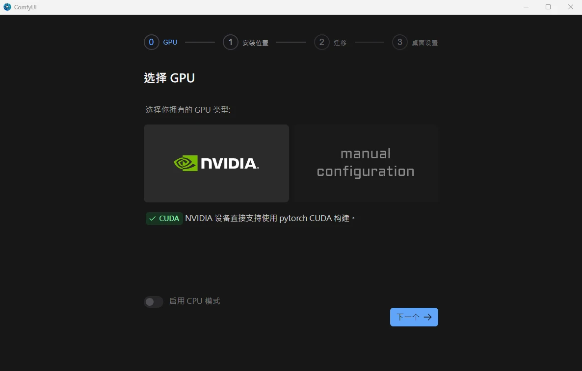 開啟ComfyUI Desktop後,選取Nvidia GPU版