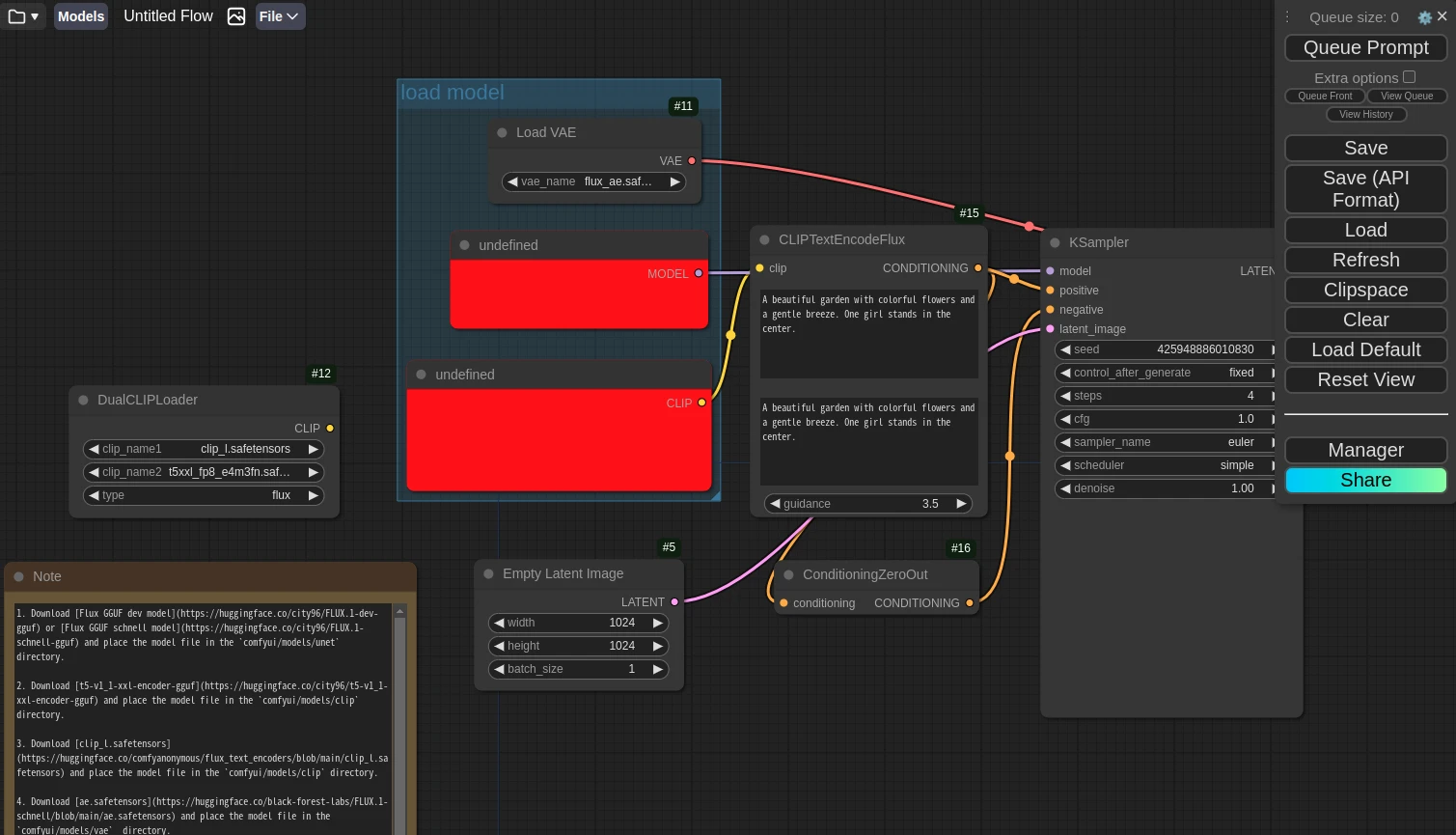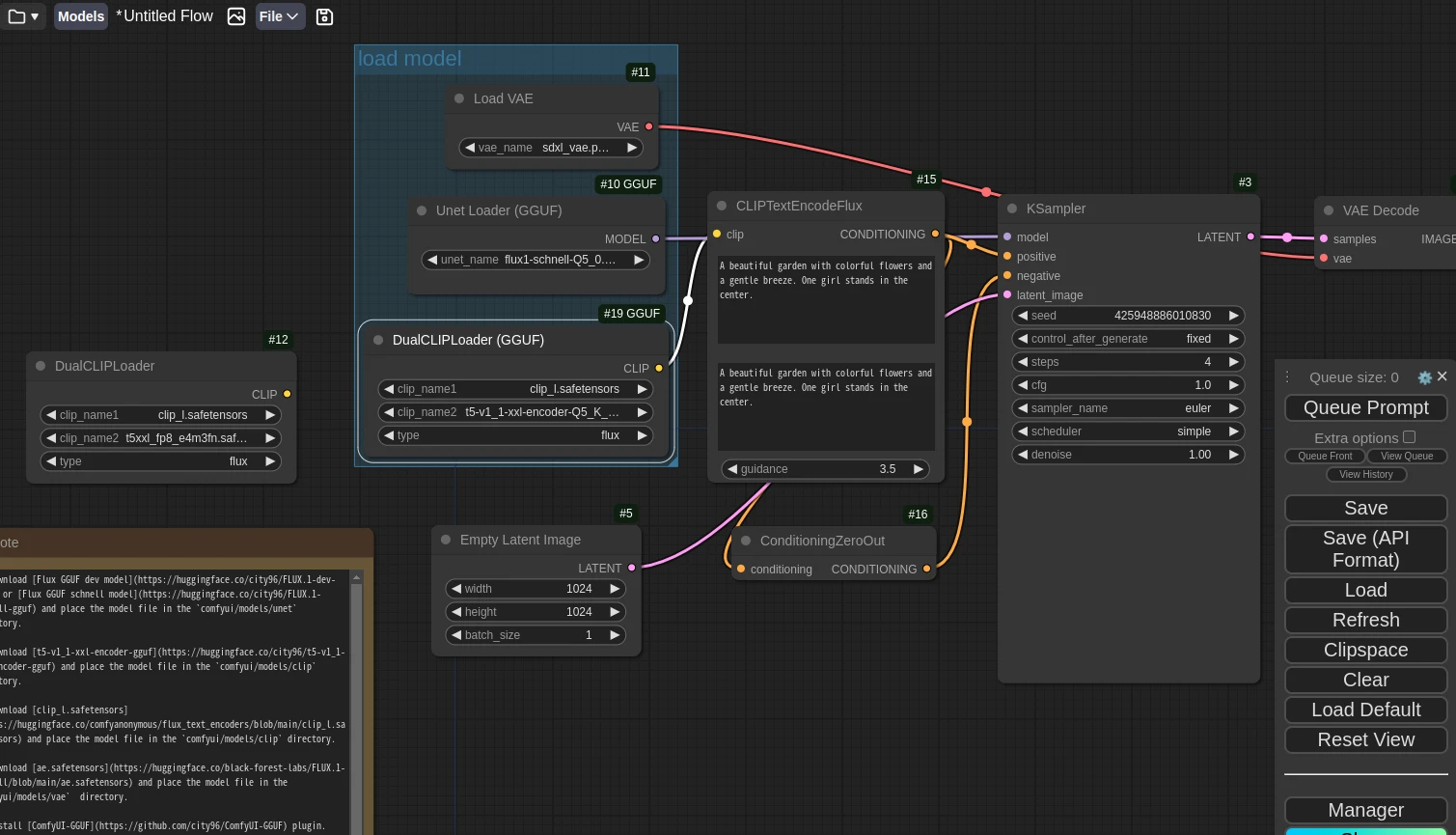 flux1-dev-Q5_0.gguf模型放到ComfyUI/models/unet目錄。所有東西都下載好之後,就按