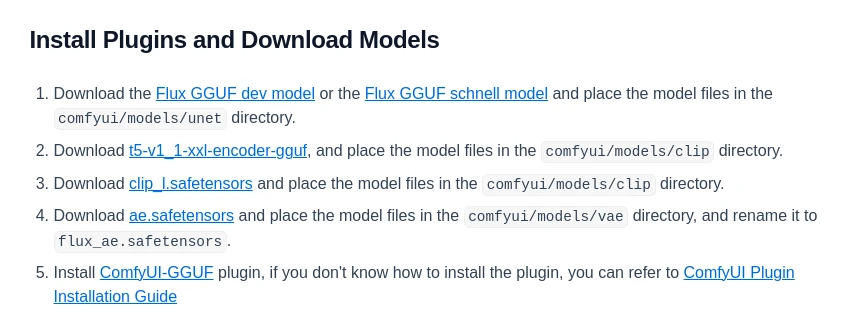 根據ComfyUI Wiki的指示,我們要手動下載這些模型檔案並放到指定資料夾。