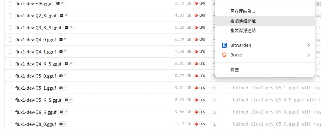 有時候模型檔不一定要跟工作流的檔案同名,只要檔案正確就行了!像我這裡下載的是量化過的Q5 FLUX模型,可以替代原版工作流所要求的Q6 FLUX模型。