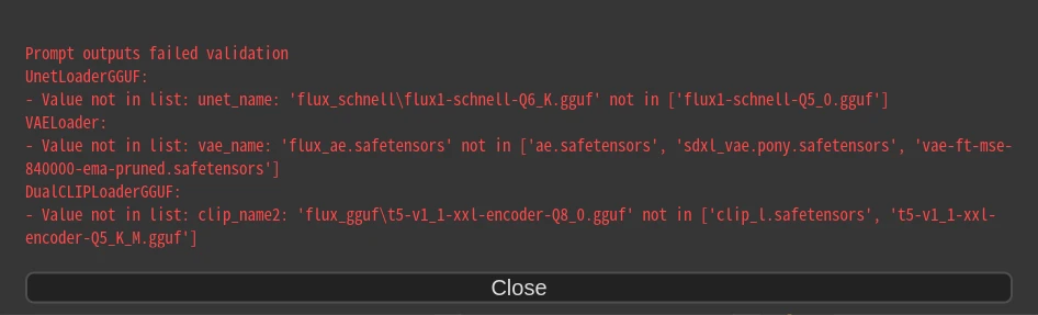 Prompt outputs failed validation錯誤,請確認模型有無安裝正確。