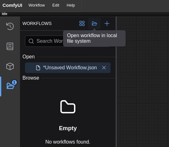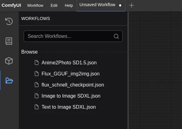 日後可以點選ComfyUI左側的面板,存取你儲存的工作流。