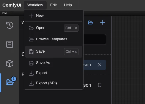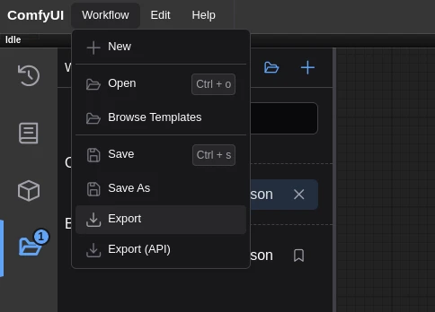 點ComfyUI左上角,選Workflow → Export,匯出工作流json。