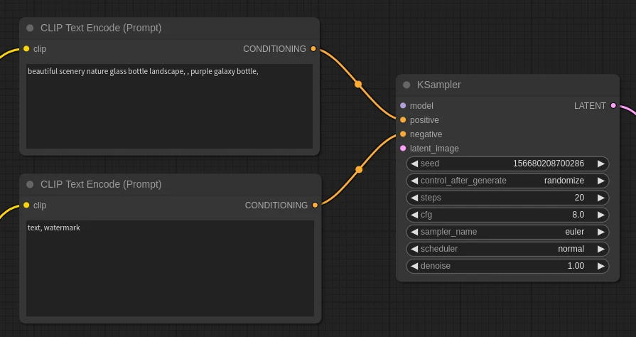 如果有第二個CLIP Text Encode (Prompt)節點,接到KSampler節點的negative槽位,那就是負向提示詞 (Negative prompt),告訴AI不要生成哪些東西。
