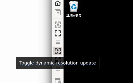 連線後記得按左邊的按鈕,啟用"Dynamic Resolution Update",這樣Windows解析度就會自動跟著Remmina視窗變化。