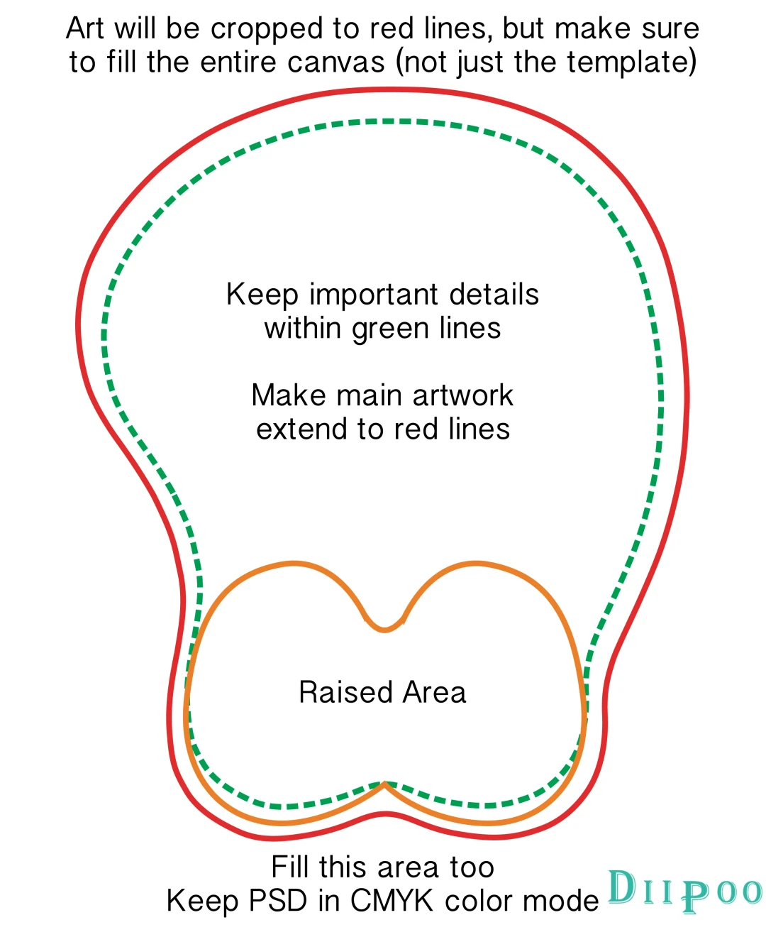 準備好圖片後,還要記得預覽滑鼠墊的樣子。有些廠商會做給你看,但你可以自行用範本試試,比如美國網站Diipoo有提供PSD素材範本:4 Oppai Mousepad Templates You Need In Your Otaku Life