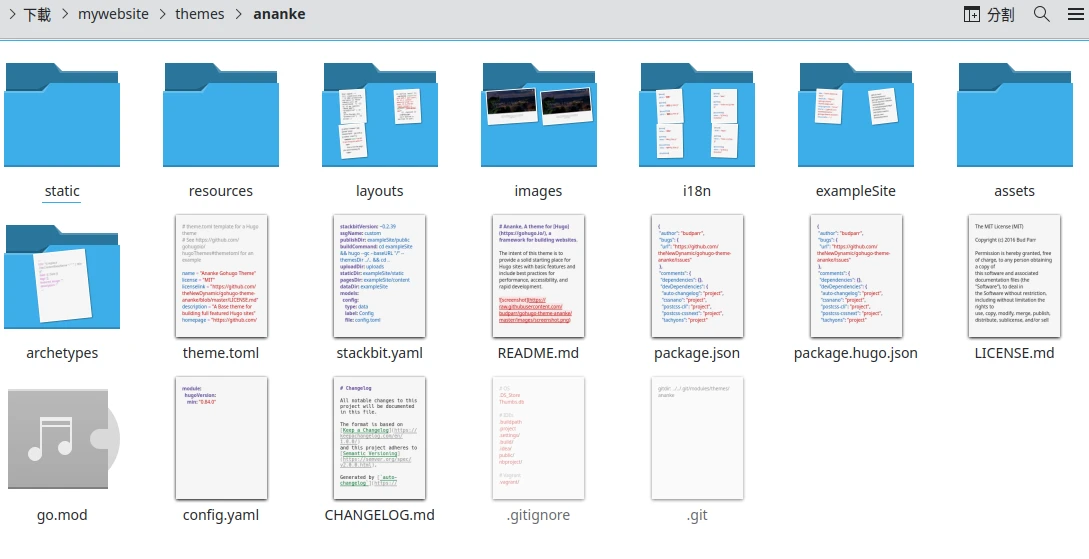 例如下圖的Ananke主題,它會安裝到網站的themes/ananke目錄