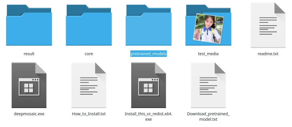 DeepMosaics_0.5.1_gpu_windows_amd64.7z版本,解壓縮再到作者的Google雲端下載預先訓練的模型資料夾,解壓縮,將