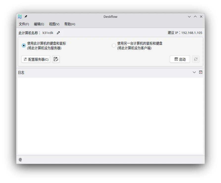 在第一部電腦開啟Deskflow,將這台電腦設定為伺服器,我們將以這台電腦為中心,控制其他電腦。這裡會顯示這台電腦的區域IP與hostname。