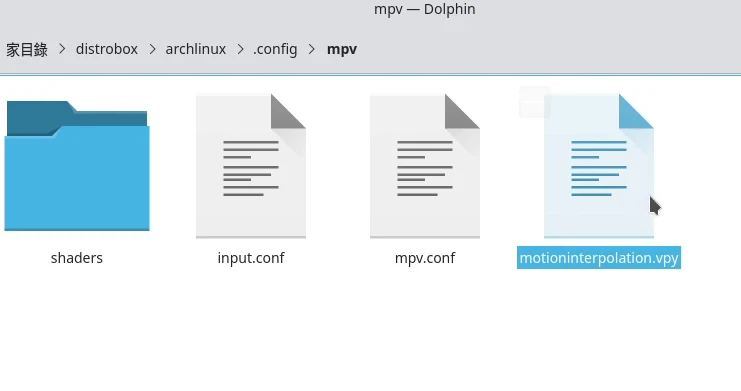 ~/distrobox/archlinux,所以.config/mpv等相關目錄要放在此。
