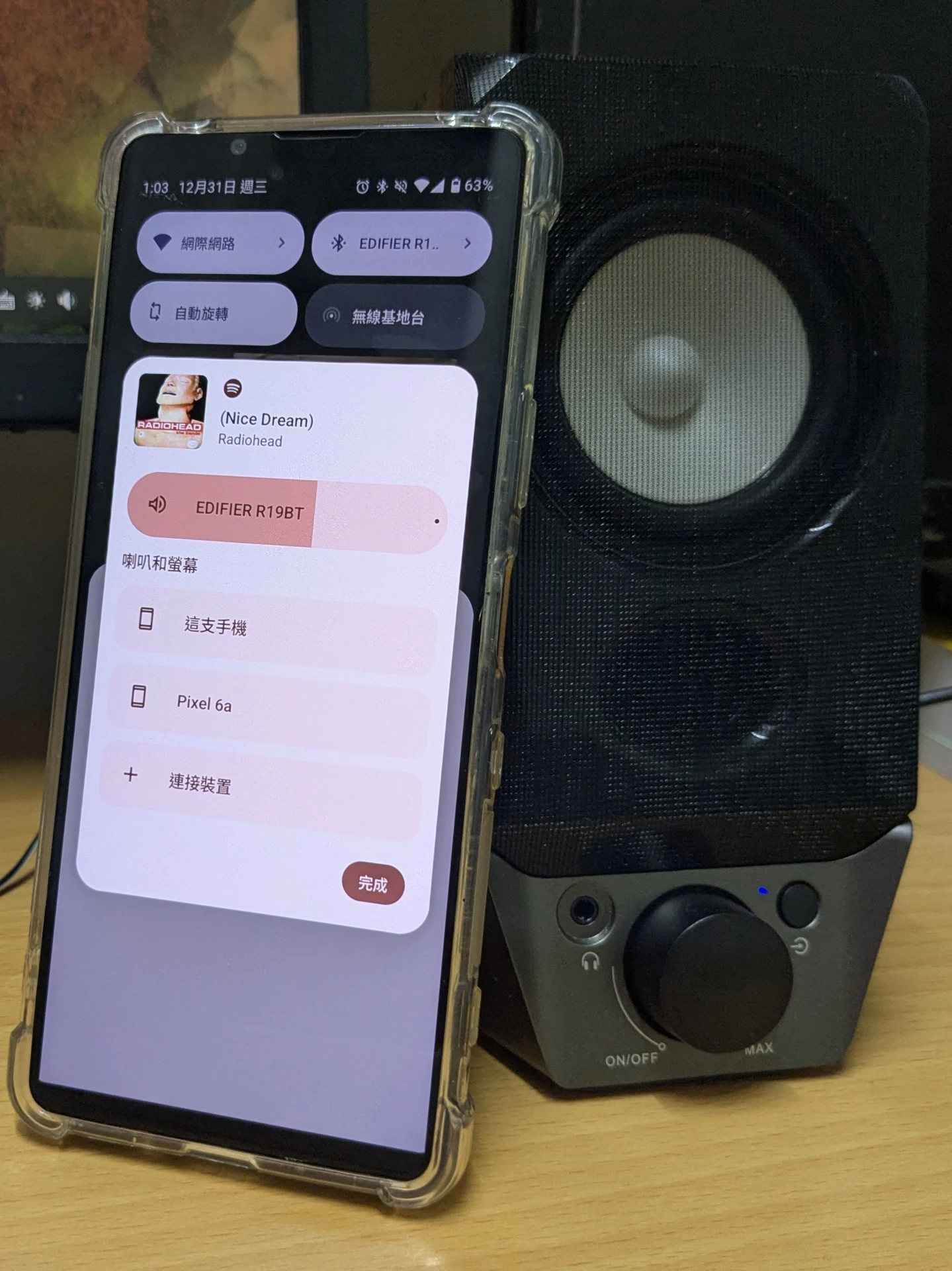 實際聽下來,雖說R19BT還沒有到低音砲的力度,不過用來壓iPad Air 6喇叭的外放還是綽綽有餘的。