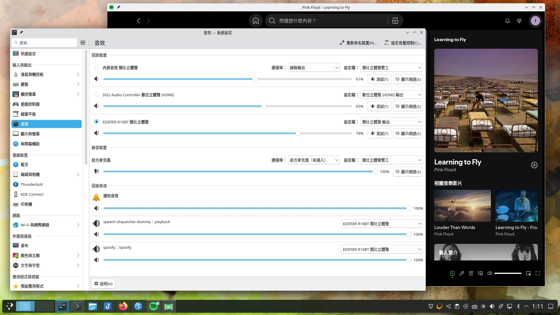 按下音箱旁邊的按鈕,變成閃藍燈,此時就會成為藍牙喇叭模式,可以被其他手機探索到。R19BT的編碼僅支援SBC,沒有AAC。不過這沒有關係,如果我們切換回紅燈模式,設定Linux PipeWire的藍牙接收器模式,搭配電腦上的Qualcomm的藍牙晶片,就有aptX串流音質可以選啦~